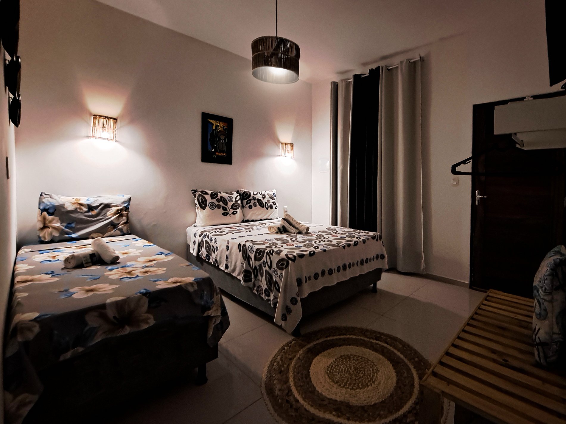 Aproveite os seus dias de férias ou de trabalho na Villa Madu Milagres! Essa suíte oferece ar-condicionado, varanda, internet, TV Smart com Sky, banheiro com box, frigobar, micro-ondas, lancheira, cafeteira, utensílios, camas, mesa e cadeiras. Além de piscina, vaga de carro individual para cada suíte e uma cozinha compartilhada para todos os hóspedes.